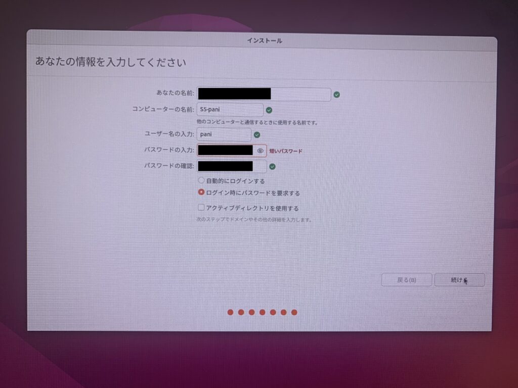 パスワードを要求された場合、「あなたの情報」で入れたパスワードを入れます。