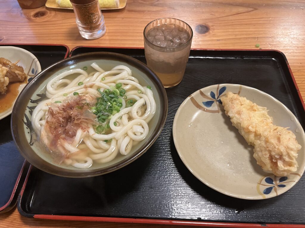 定番の早朝フライト、朝は迷わずうどん