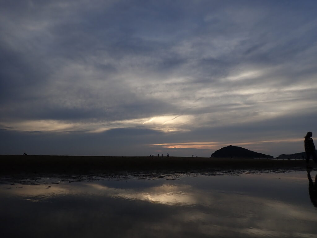 旅行の日程を考えるときに、この場所のために干潮と日の入り時刻が重なるタイミングを狙っていたので、やる気は十分。