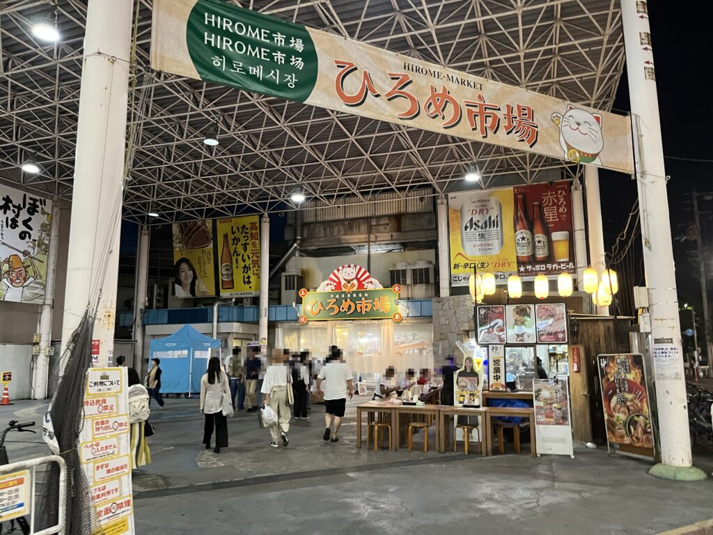 夜ご飯を求めて、ホテルから歩いてひろめ市場へ。
