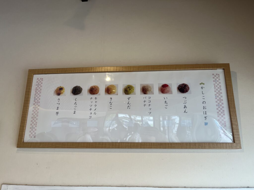 この日はすでに売り切れが出ていましたが、種類がとにかく豊富で、目で見ているだけでも楽しいおはぎが並んでいます。